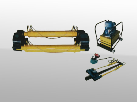 4、將油缸、加長桿用銷子組裝在斜鐵座上,加長桿凹臺部位朝向鋼軌,組裝時兩側(cè)分別組裝,可將另一側(cè)油缸上的油管暫時拆下,開動油泵,調(diào)整活塞桿伸縮量以便插上銷子。
